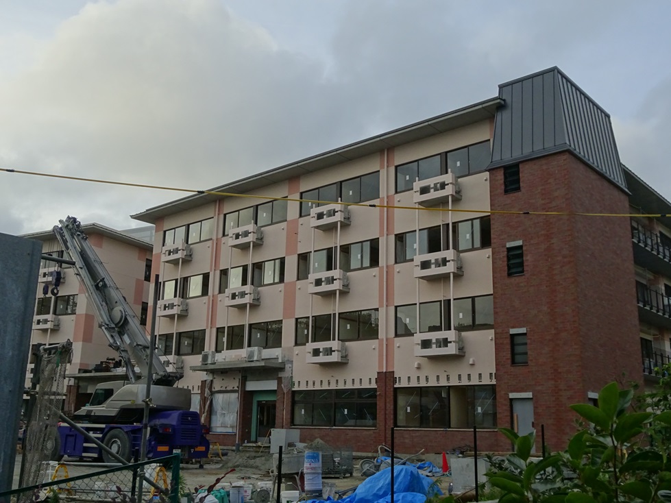 全体を囲っていた足場がなくなり、外観はほぼ完成といったところでしょうか。レンガが印象的な造りになっています。近くにお越しの際は是非ご覧ください。